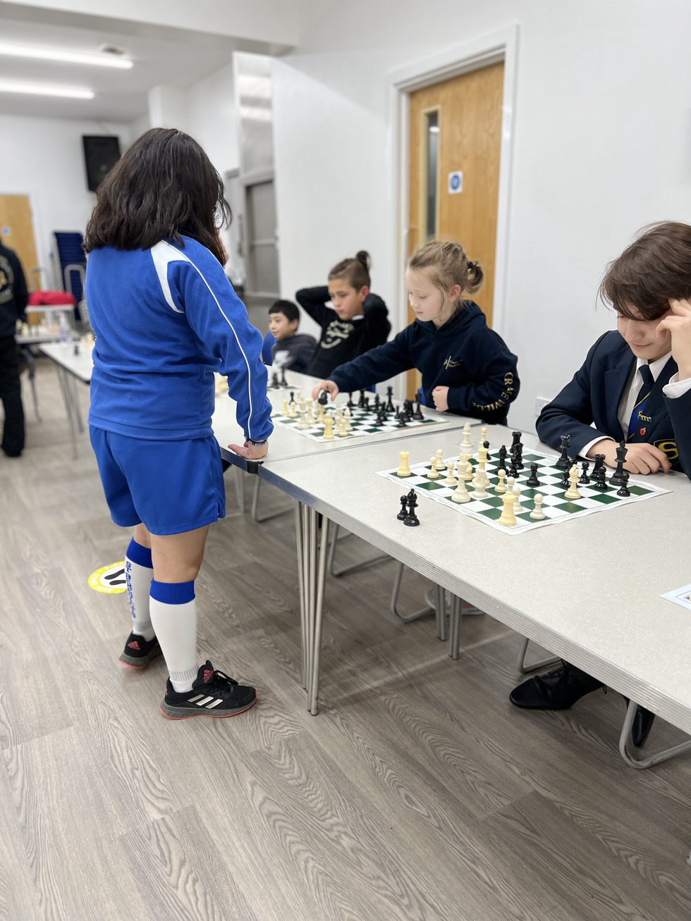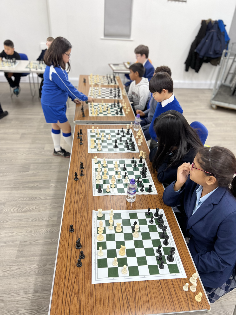 On the 16th, we were delighted to welcome Andrew Willoughby to our chess club. Andrew or 'Andy' is the U11 Girls Team Manager with the Essex Junior Chess Association (EJCA). He brought along some of his team's trophies to show our players the potential of what working hard and practising chess can bring. Andy teamed up with our own Mae Cataabay to play each of our club members at the Tuesday session. After nearly two hours of play, the final moves were made. It was a magnificent opportunity for the club to play two strong players in one session. Each and every player gave it their all, and I was struck with their concentration and determination in the games.