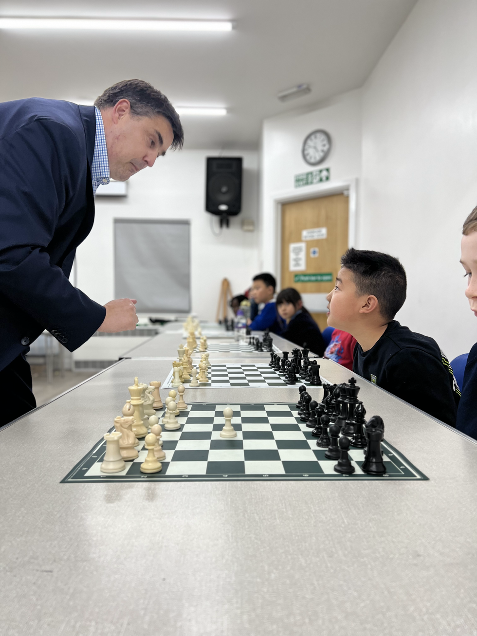 We have given a little break in learning about endgames in recent weeks, but the club has had a wonderful opportunity to play our guests in simultaneous chess games and put their knowledge into practice. Simultaneous chess, in which one player (typically of high rank) plays several games at the same time with many other players.