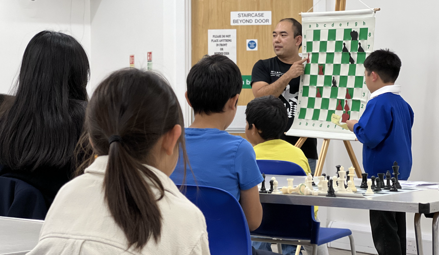 In Tuesday’s session, the beginners learned about the principles of chess openings. Coach Catabay had the players put the principles into practice on the board, moving the pieces while he went around to check on their understanding of the lesson. Mae and Rezin Catabay helped deliver the lesson to the intermediate and advanced players. They both chose a game that they played in the British Chess Championship Finals to analyse with the more advanced players. By the end of the session, we had all the chess club in on the discussion. The club also had the chance to play over-the-board chess with other members of their levels. We were also grateful to have John Duff Cole, Chairman of the North Essex Chess League and Colchester Adults Team, join us on the 28th of September. John was a great help to organise pairings while mentoring the beginners.